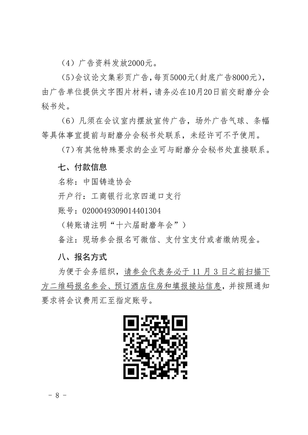 > “第十六届中国铸造协会耐磨材料与铸件分会年会”正式通知