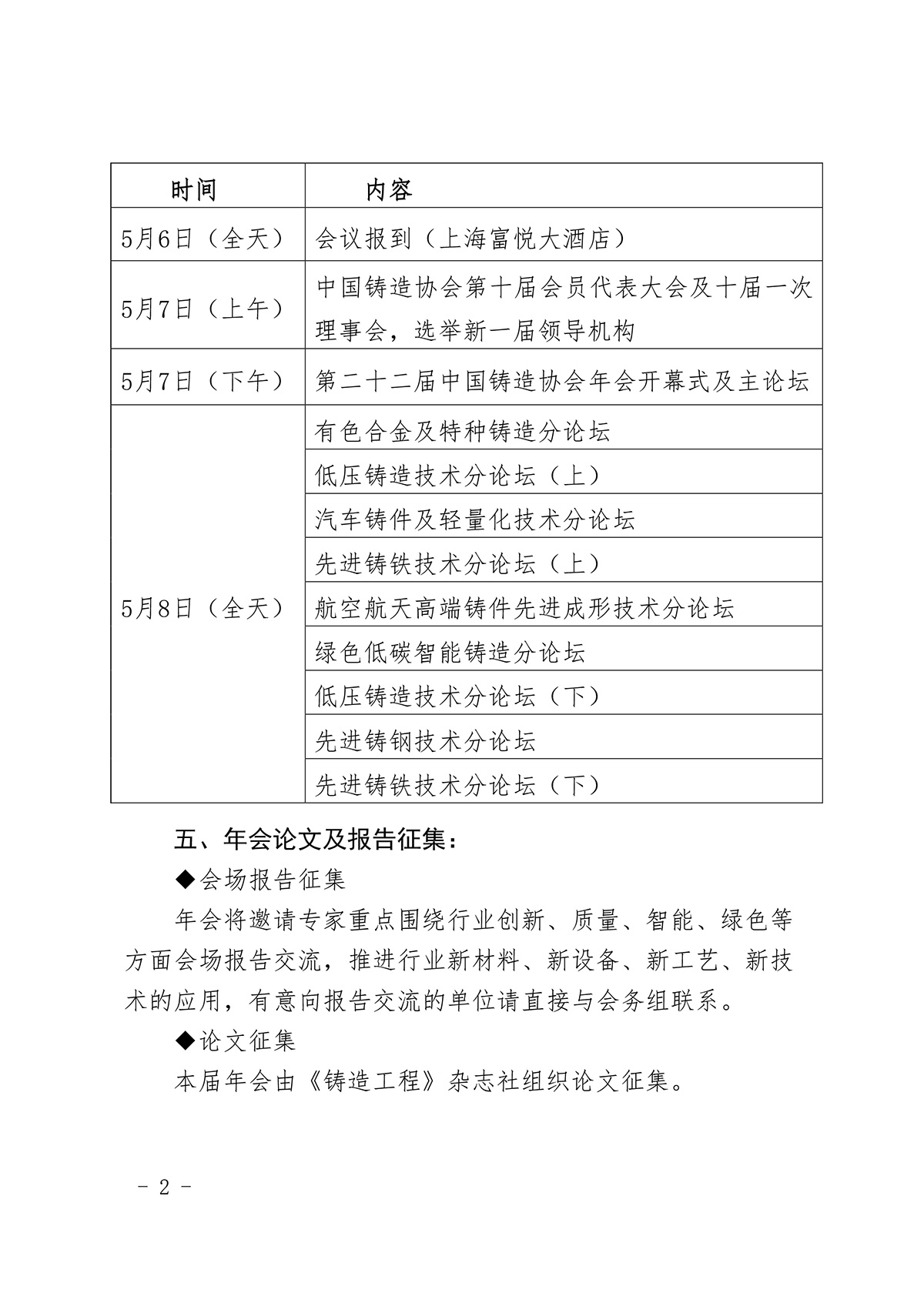 关于召开“第二十二届中国铸造协会年会暨第十届会员代表大会”的通知