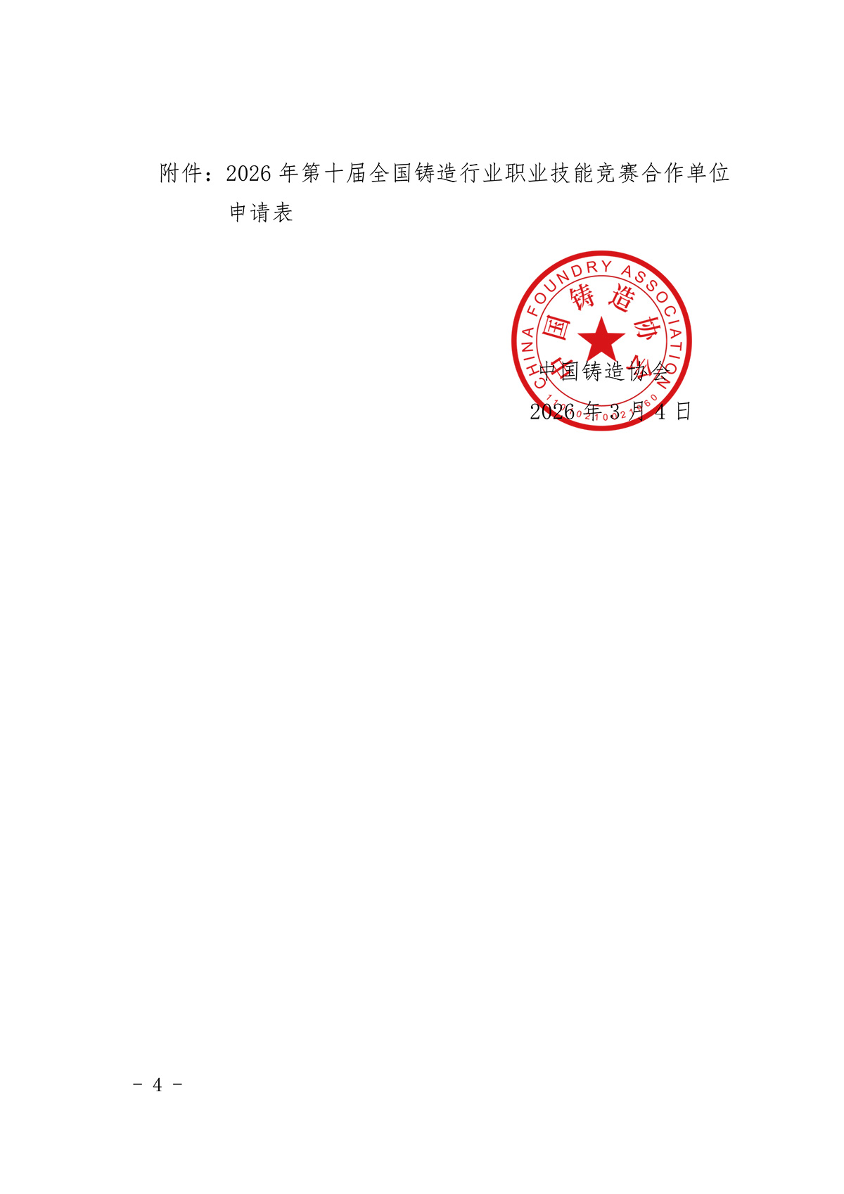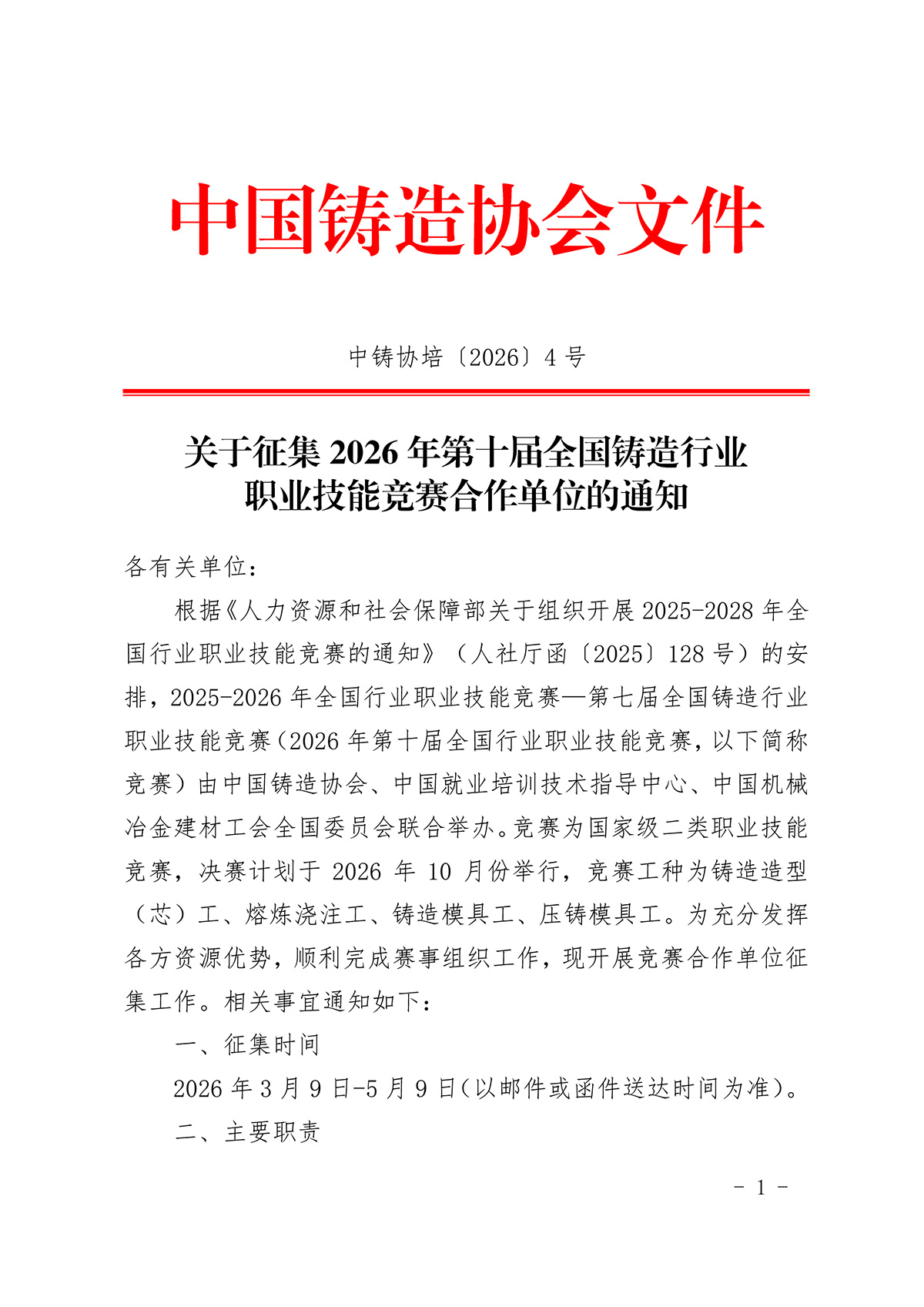 > 关于征集2026年第十届全国铸造行业职业技能竞赛合作单位的通知