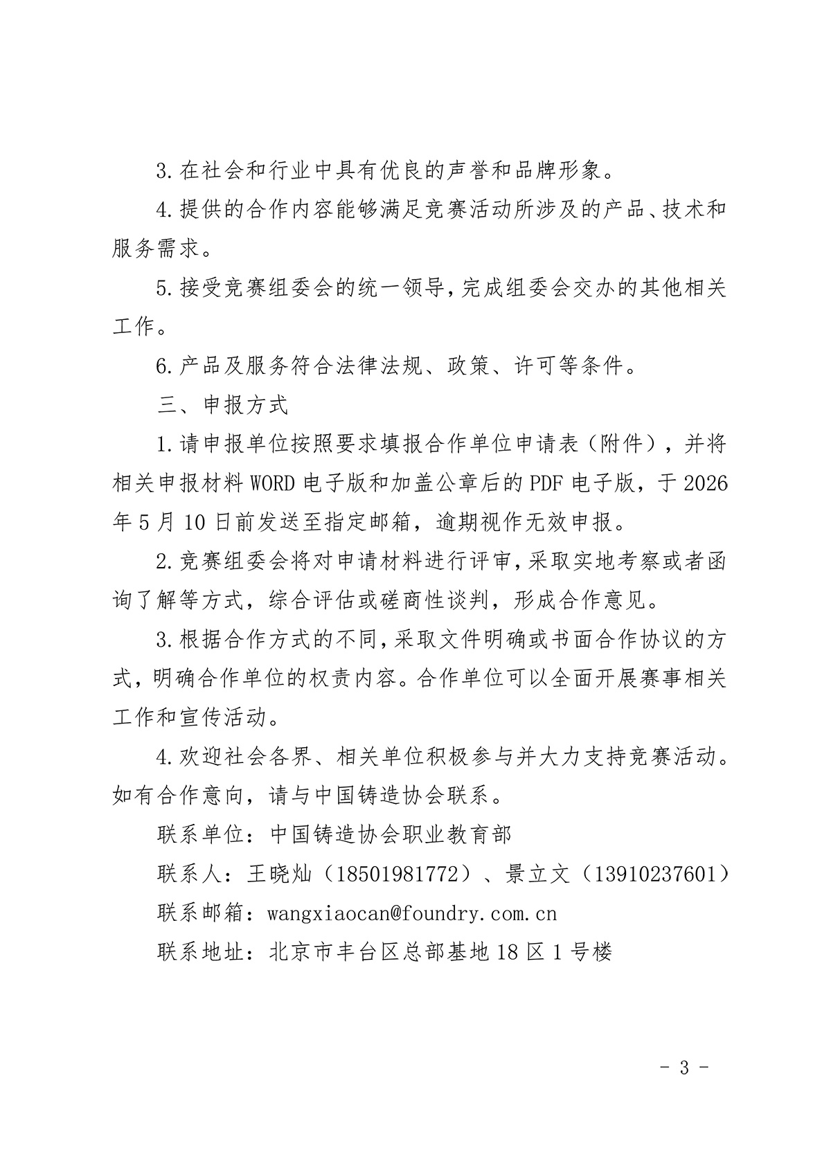 关于征集2026年第十届全国铸造行业职业技能竞赛合作单位的通知