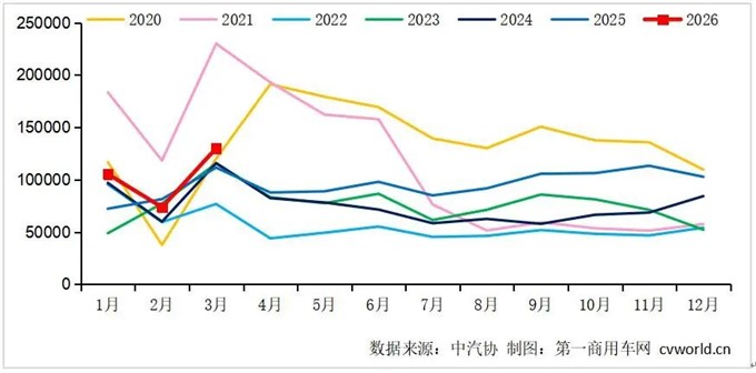 2026年3月,重卡市场一举扭转2月份春节淡季同比下滑的态势,实现了旺季增长。
