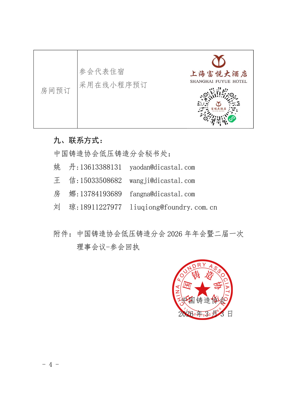 中国铸造协会低压铸造分会2026年年会暨二届一次理事会议-参会回执
