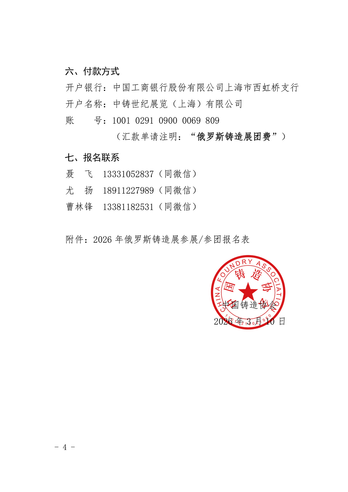 2026年俄罗斯铸造展参展/参团报名表