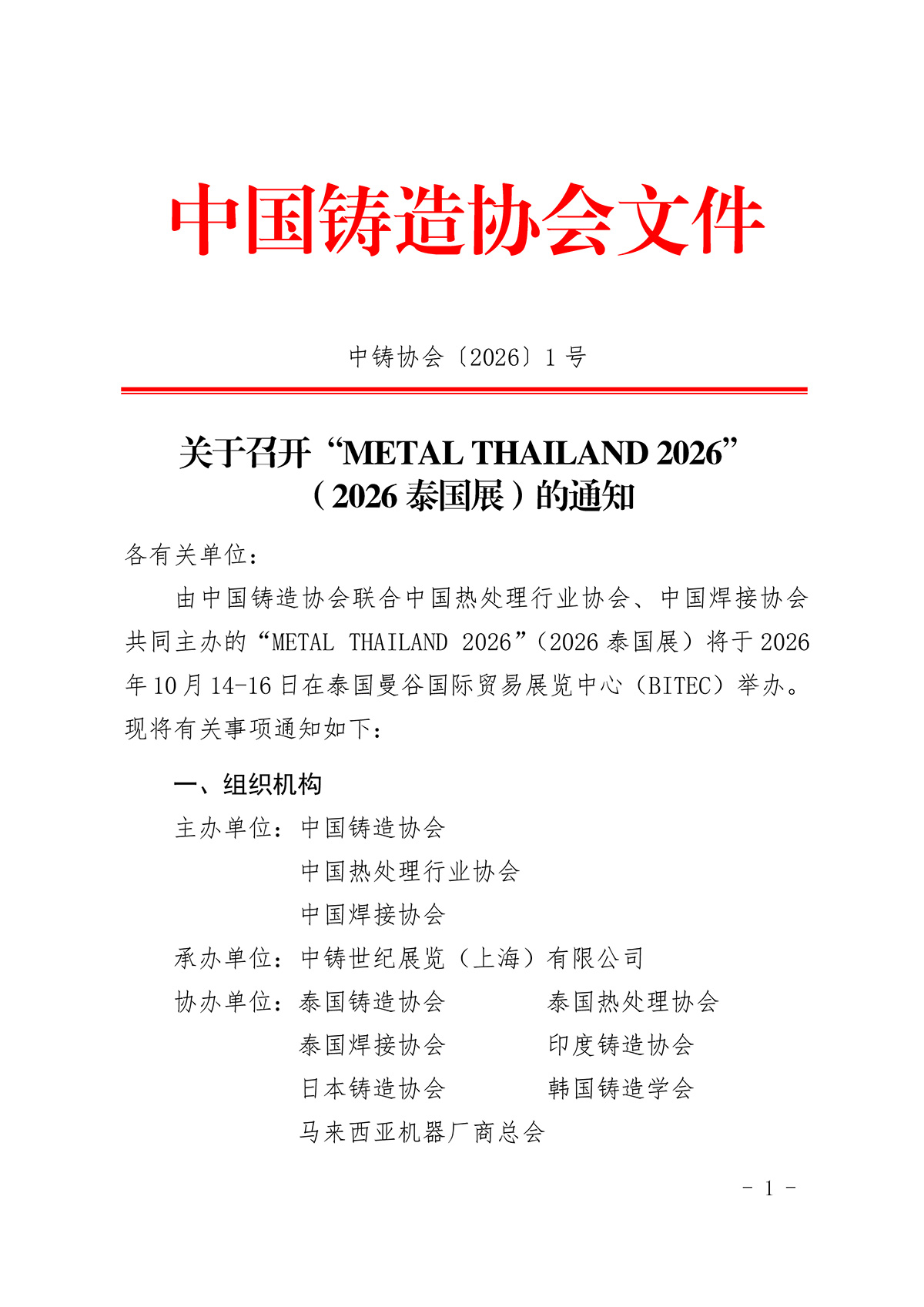 > 关于召开“METAL THAILAND 2026”(2026泰国展)的通知