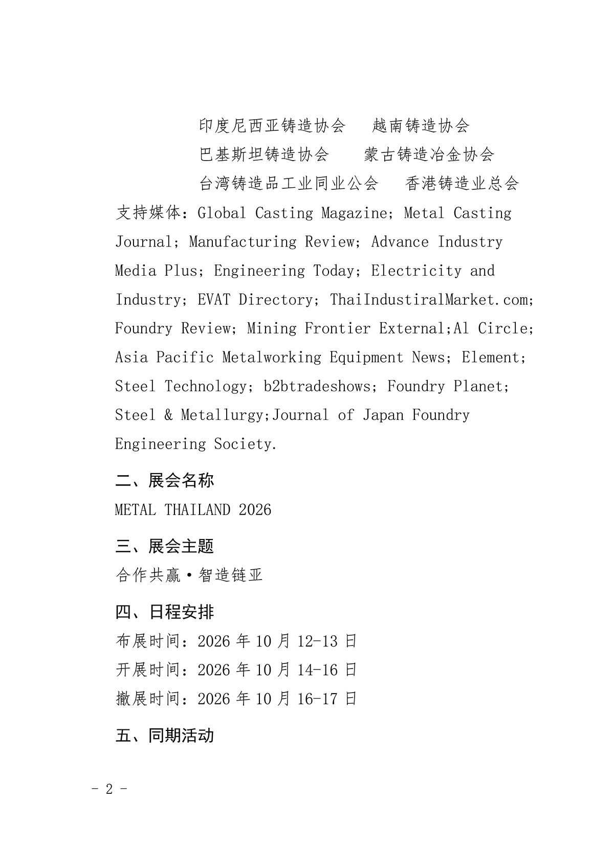 关于召开“METAL THAILAND 2026”(2026泰国展)的通知